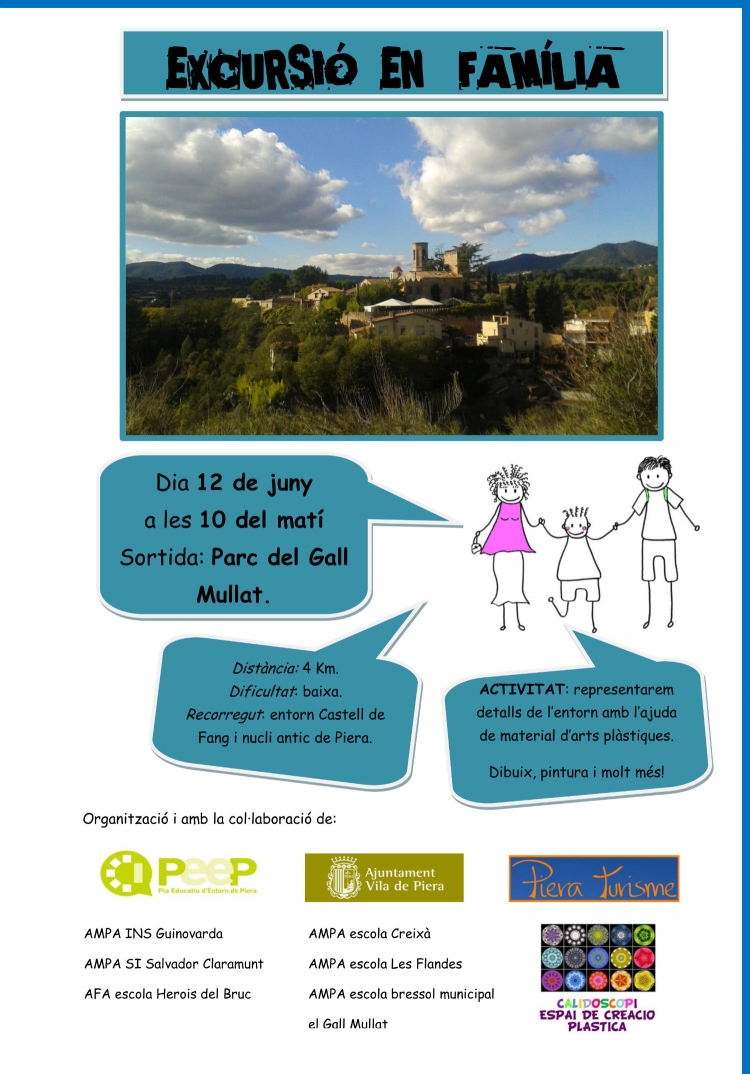 Piera Turisme junt amb els suport de les AMPES i AFES del municipi organitza aquest diumenge 12 de juny una sortida de caire familiar dins del Pla Educatiu d'Entorn de Piera. Una activitat que inclou el coneixement del nostre entorn i un taller de manualitats per gaudir-ne grans i petits.