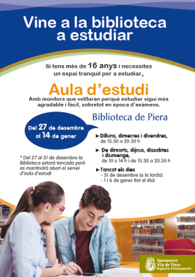 Del 27 de gener al 14 de desembre la biblioteca de Piera amplia el seu horari per oferir un lloc tranquil on preparar els exàmens.