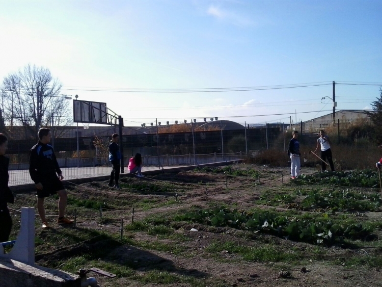 Les instal·lacions dels centre permeten tenir un espai prou ample per cultivar. Aquest grup d’alumnes són responsables de treballar la terra preparant-la, plantant diferents verdures i hortalisses i cuidant de l’hort fins que arribin les cols, patates, carbassons, bledes...