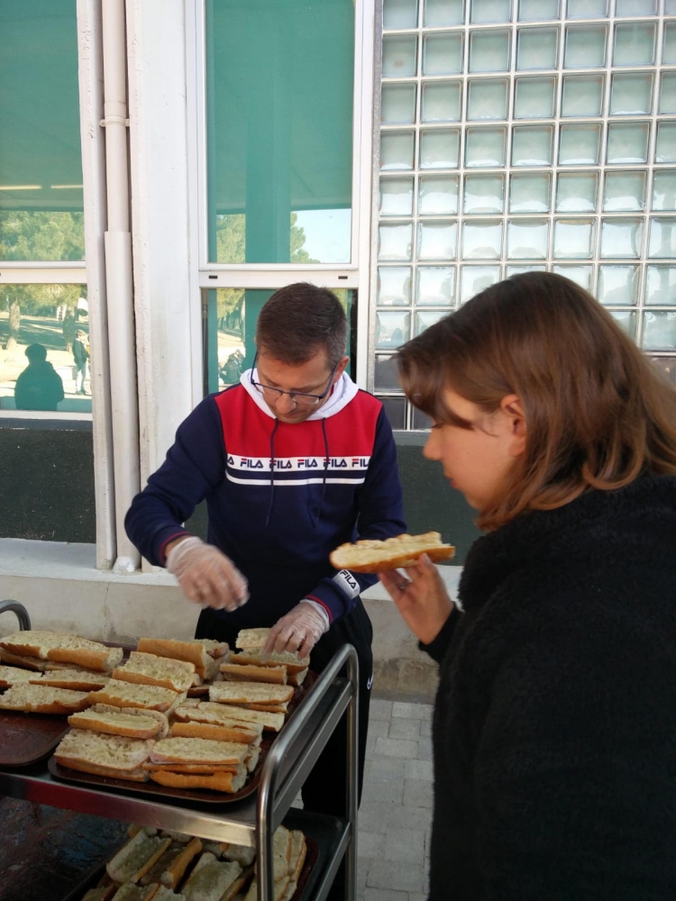 A l’Escola Herois del Bruc han celebrat el Dia de la No-violència i la Pau amb diferents activitats a les aules i amb un esmorzar, al qual anomenen “esmorzar solidari”, que consisteix en esmorzar pa amb oli i sucre pel qual han comptat amb la col·laboració de l’empresa del menjador escolar AlimentArt .